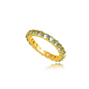 Semijoia – Anel Aparador Cristais Confeccionado em Banho de Ouro Amarelo 18K (Cód. 125640) Anel Espessura: 3mm