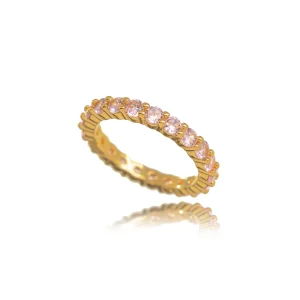 Semijoia – Anel Aparador Cristais Rosa Quartzo Confeccionado em Banho de Ouro Amarelo 18k. (Cód. 130789) Anel: Altura: 6mm