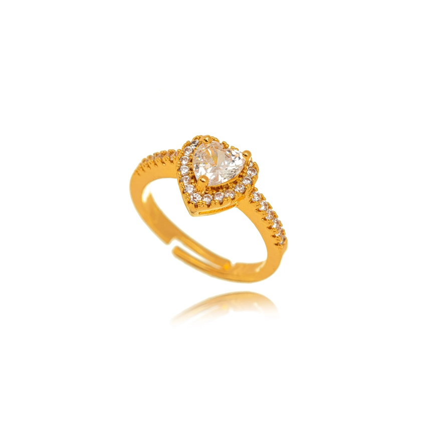 Semijoia – Anel Coração Cravejado Confeccionado em Banho de Ouro Amarelo de 18K. (Cód. 128951) Anel Espessura: 2mm Coração Altura:…