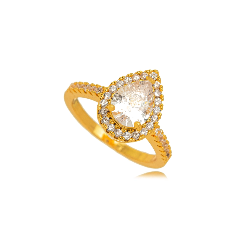 Semijoia – Anel Gota Cravejado Confeccionado em Banho de Ouro Amarelo de 18K. (Cód. 131205) Anel Espessura: 2mm Gota Altura:…