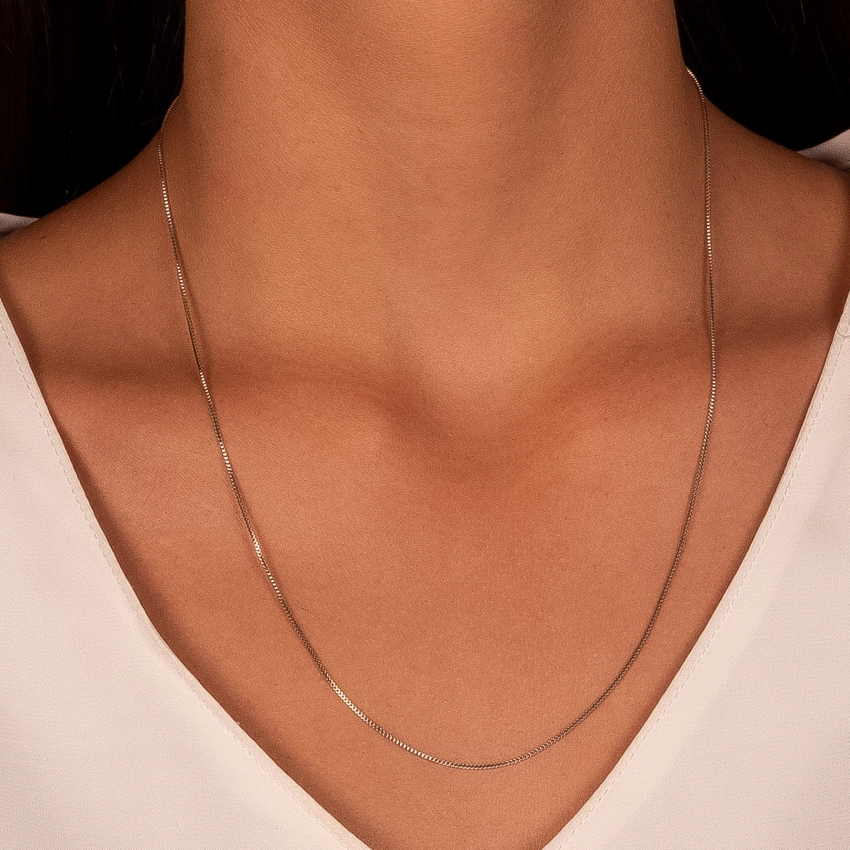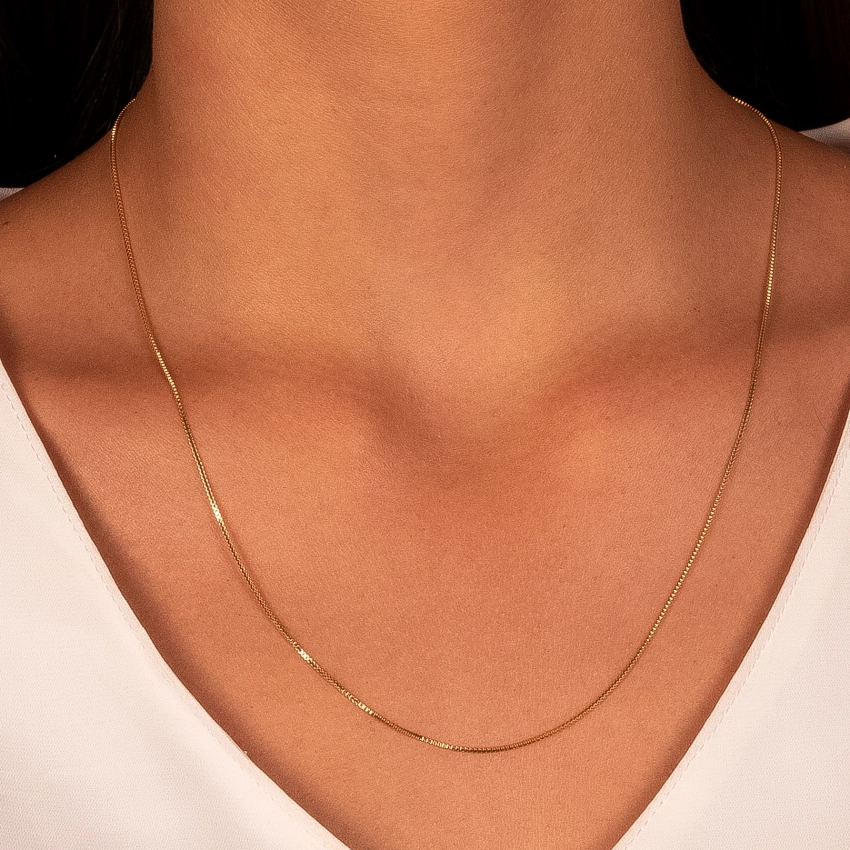 Semijoia – Colar Veneziana Lisa Confeccionado em Banho de Ouro Amarelo de 18K e Ródio Branco. (Cód. 76778)