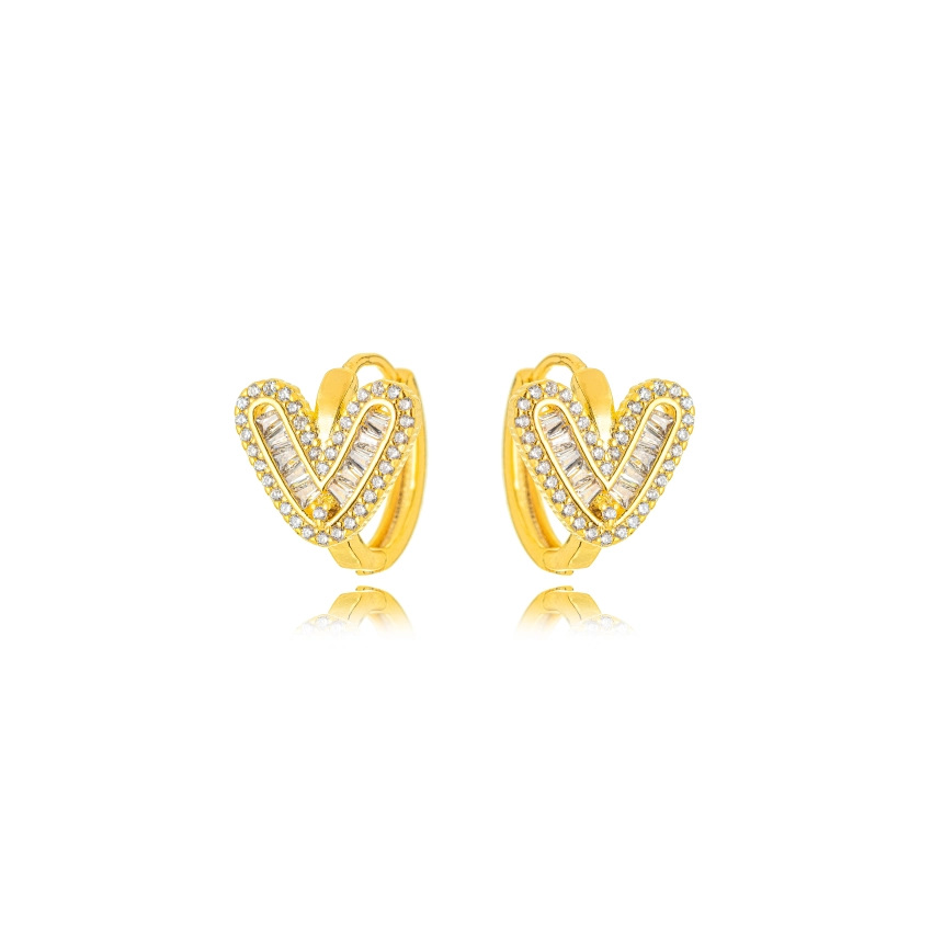 Semijoia – Brinco Argola Coração Cravejado Confeccionado em Banho de Ouro Amarelo 18K. (Cód. 121917) Brinco Altura: 1,5cm Largura: 1,5cm Espessura:…